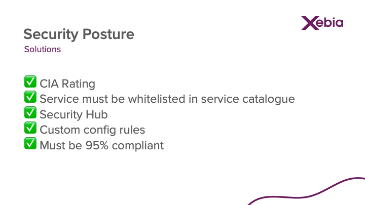 Looking at the security posture of the enterprise, with all the measurements, constructs and aspects in place, we are creating code which adheres to the security standards written down in the service catalogue. And following this will result in a 95%+ Security Hub compliant score.