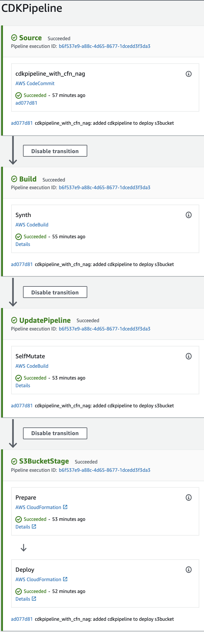 With the CDK pipeline deployed, the first run is automatically initiated.
